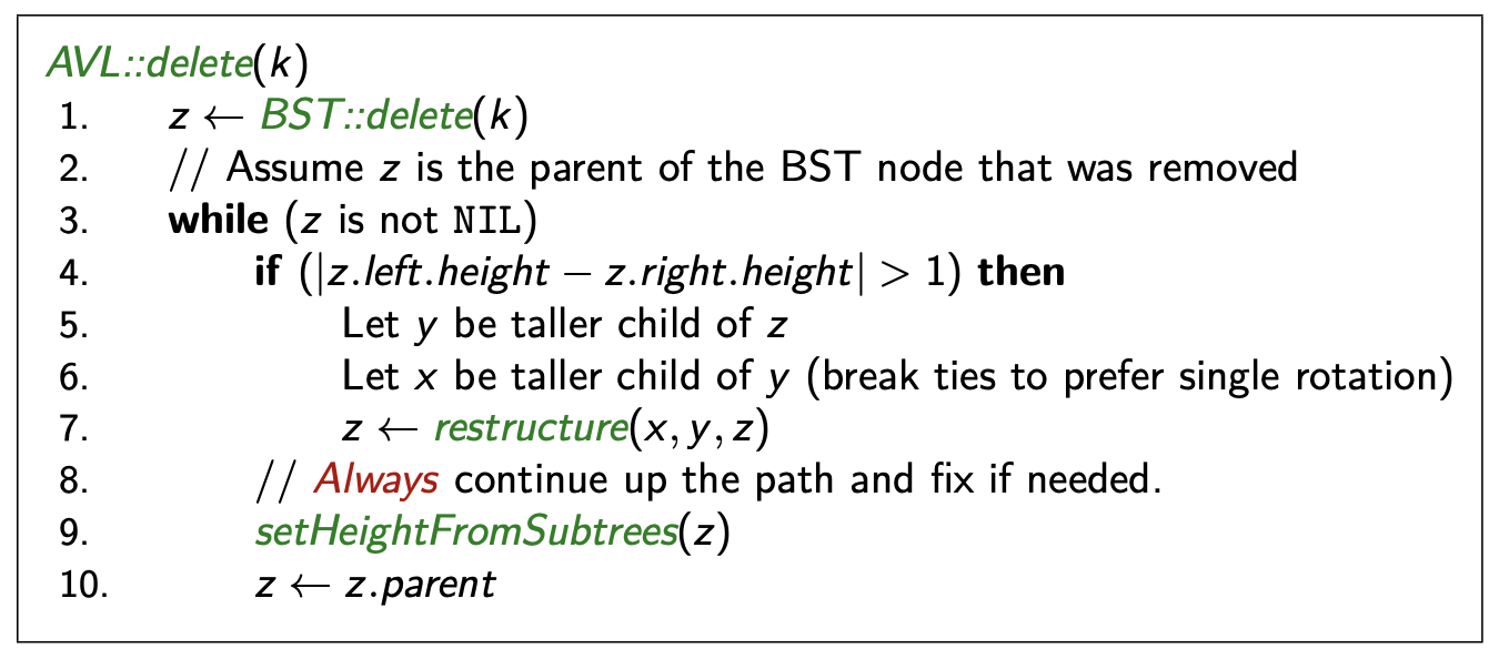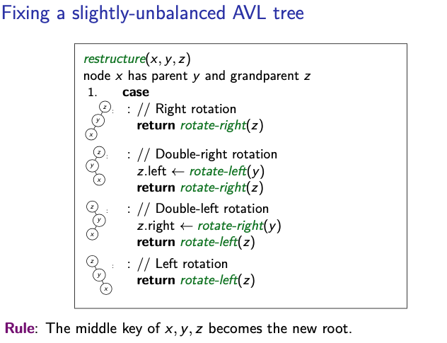 z ← restructure(x, y, z) // Restructure the tree to restore balance