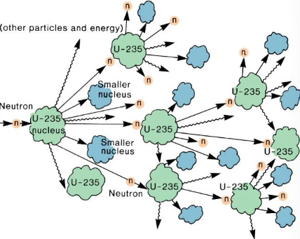 More neutrons released and hit other U-235 nuclei… Hence a chain reaction continues that releases energy