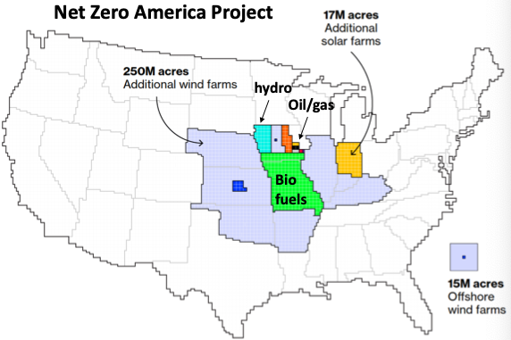 - Princeton University’s Net Zero America Project maps land use for various scenarios to meet net zero emissions by 2050 as proposed by President Biden.