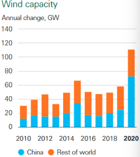 - Renewables increased at fastest rate in 2 decades, despite 2020 lockdowns