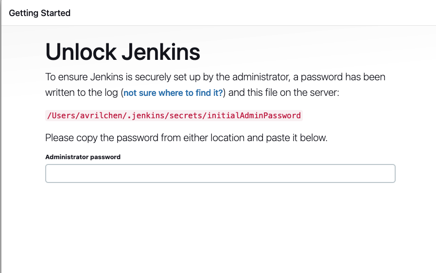 - browse https://localhost:8080 and setup my account, follow instruction in https://www.macminivault.com/installing-jenkins-on-macos/ to complete setup.