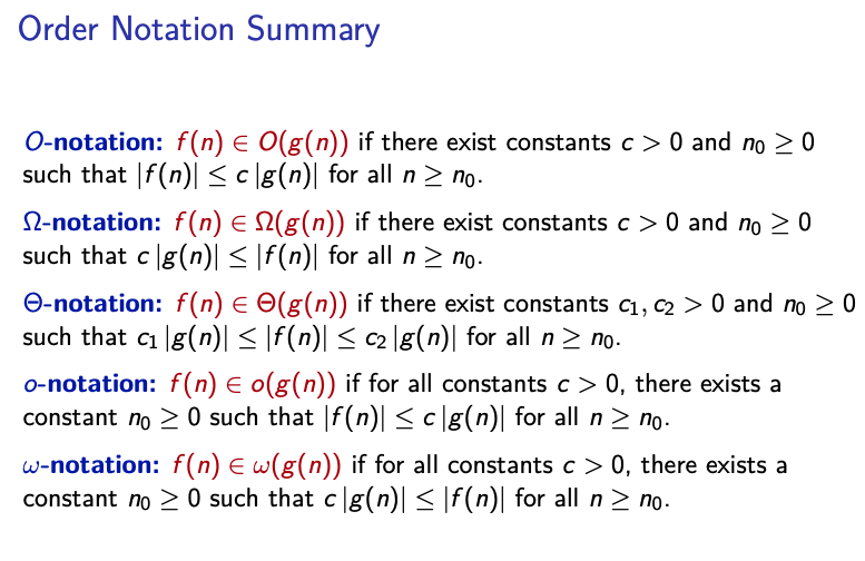 : ( is asymptotically bounded above by ) if there exists constants and such that for all .