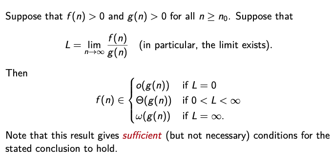 - Given two positive function and which asymptotic bounds can be proved/disproved directly using the Limit Rule?