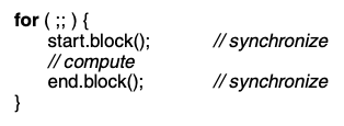 - Hence, all tasks leave together (synchronized) after arriving at the barrier.
