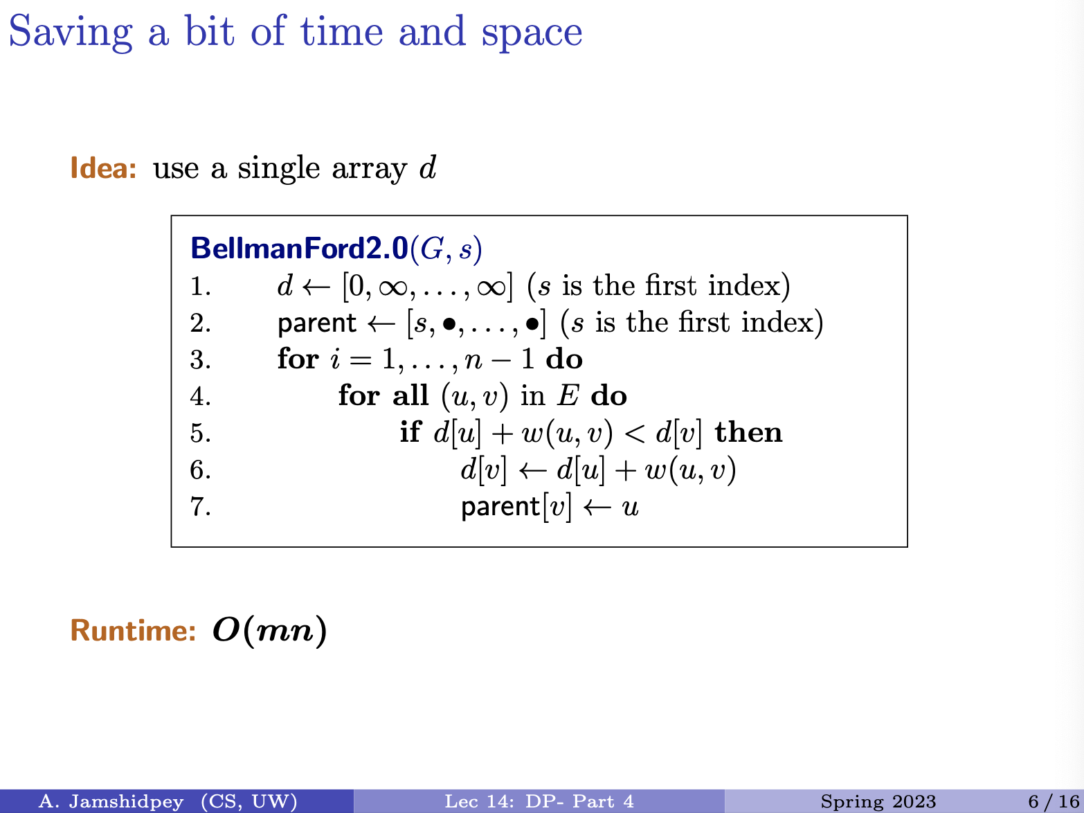 - The core of the algorithm is a loop that scans across all edges at every loop.