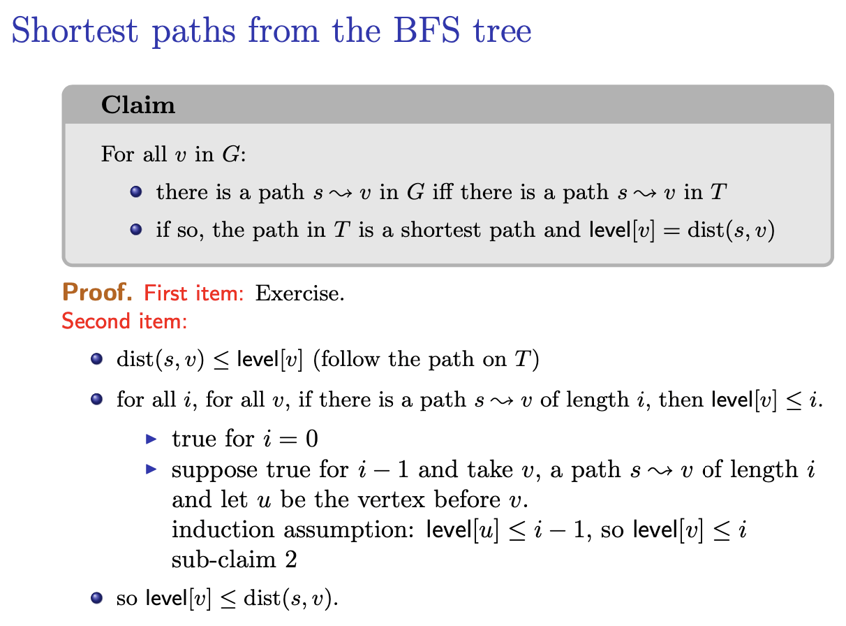 - if so, the path in level[v]=dist(s,v)$