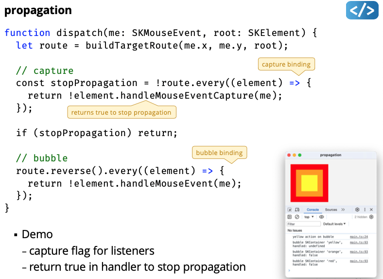 Potential exam question on event translation. Look into the simplekit canvas-mode.ts implementation for it.