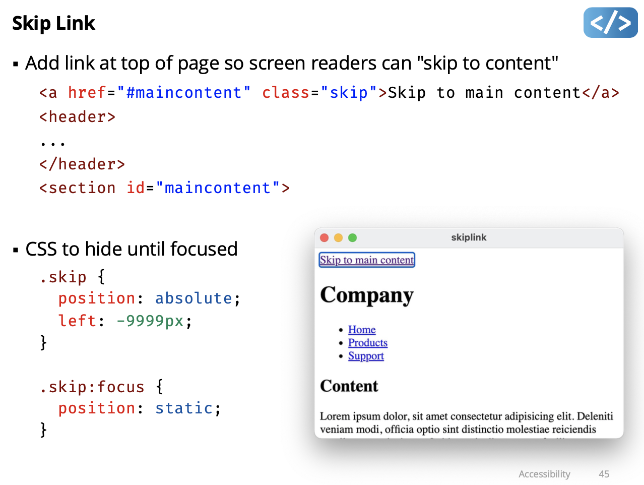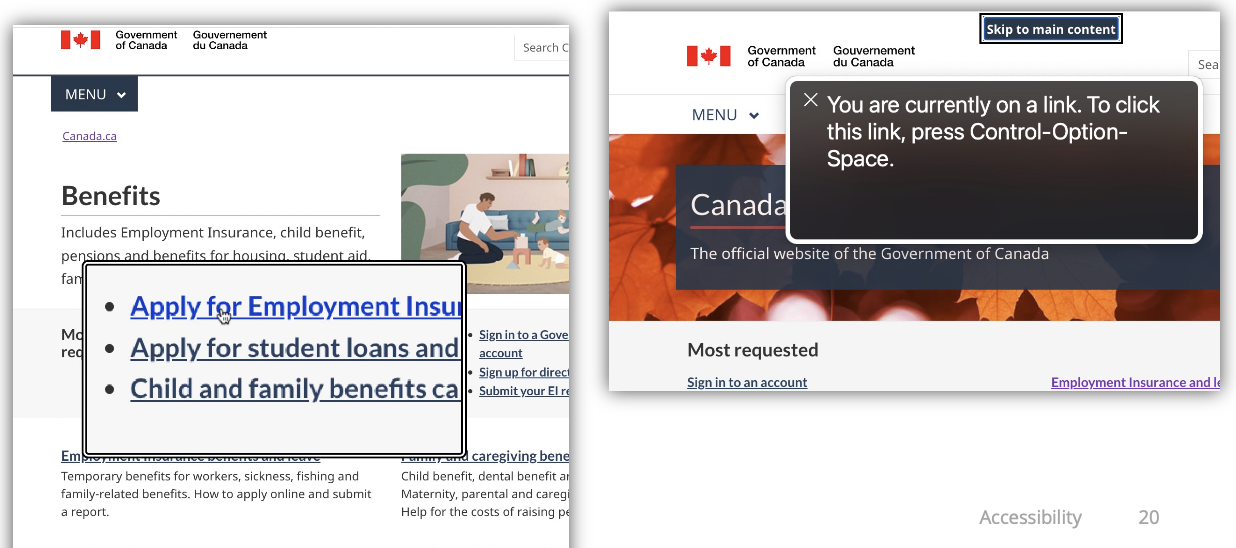- e.g. VoiceOver on MacOS, Narrator in Windows