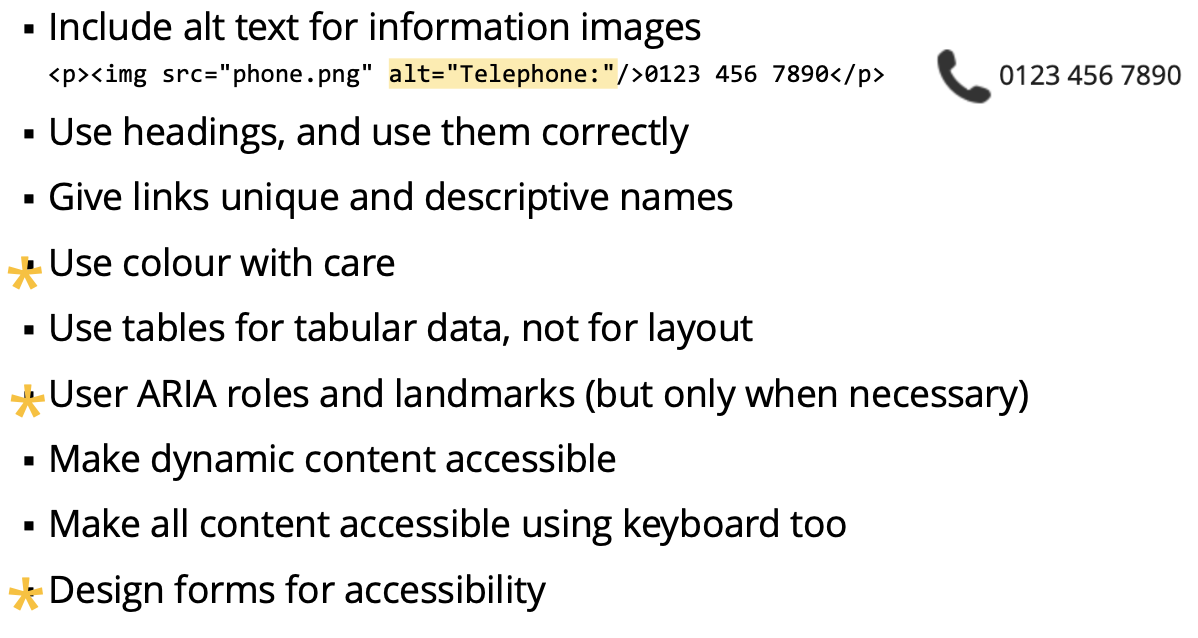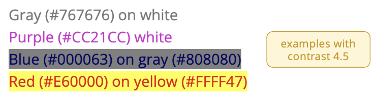 - WCAG Colour Contrast Guidelines (most cases, some specific contrast for logos, larger text, etc.)