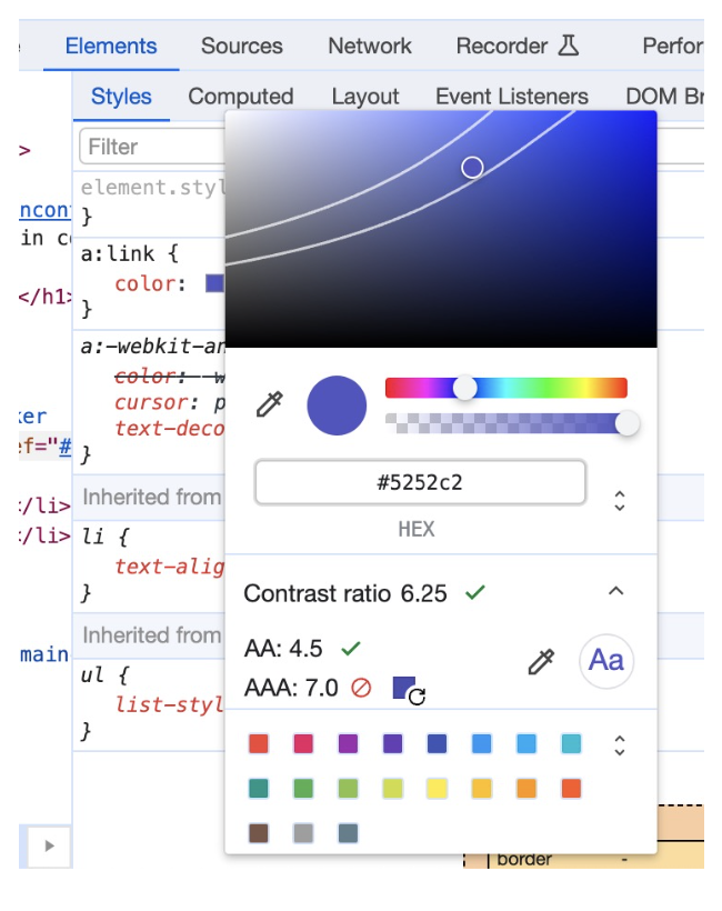 - Click ”Contrast ratio X.XX” to display contrast thresholdlines in colourspace