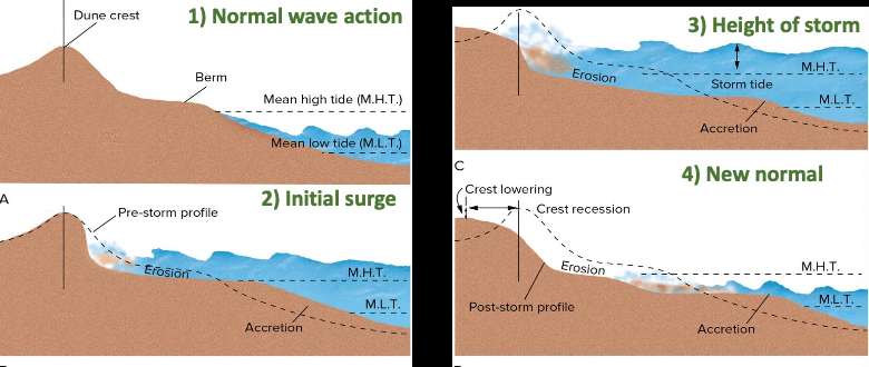 - Beach must be replenished by wave erosion, stream delivery, or blown dune sand