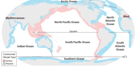 - Coastline shaped by tectonic setting, materials present, and water energy