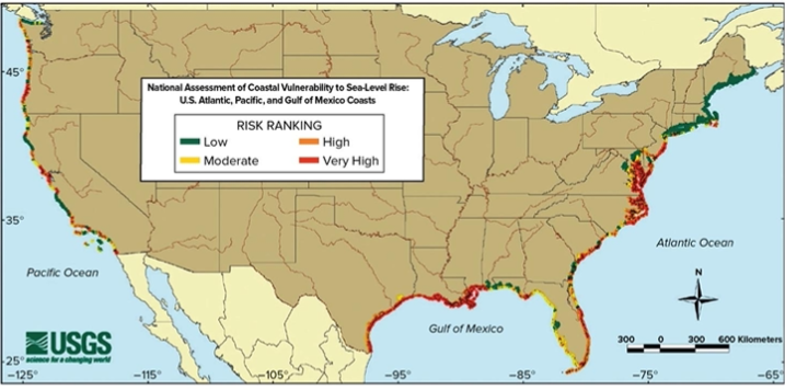 - Broad beaches; Wide continental shelf; Sandy offshore (barrier) islands