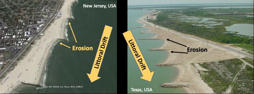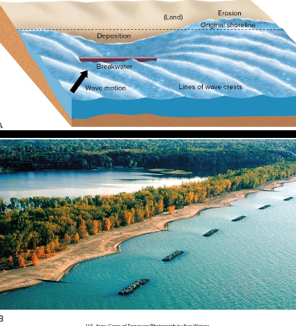Result in scallop shaped beaches and can cause more harm in the eroding zones