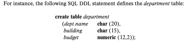 SQL provides a rich DDL that allows one to define tables with data types and integrity constraints.