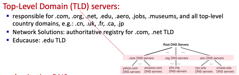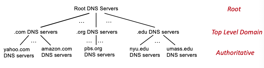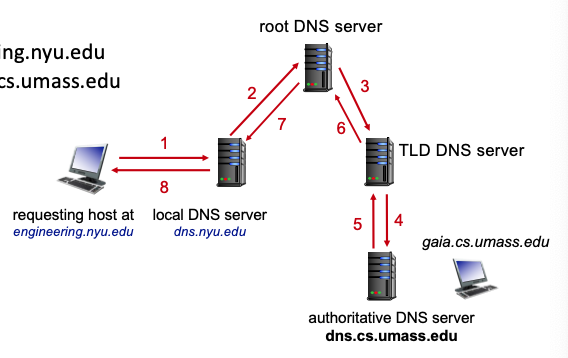 - organization’s own DNS server(s), providing authoritative hostname to IP mappings for organization’s named hosts
