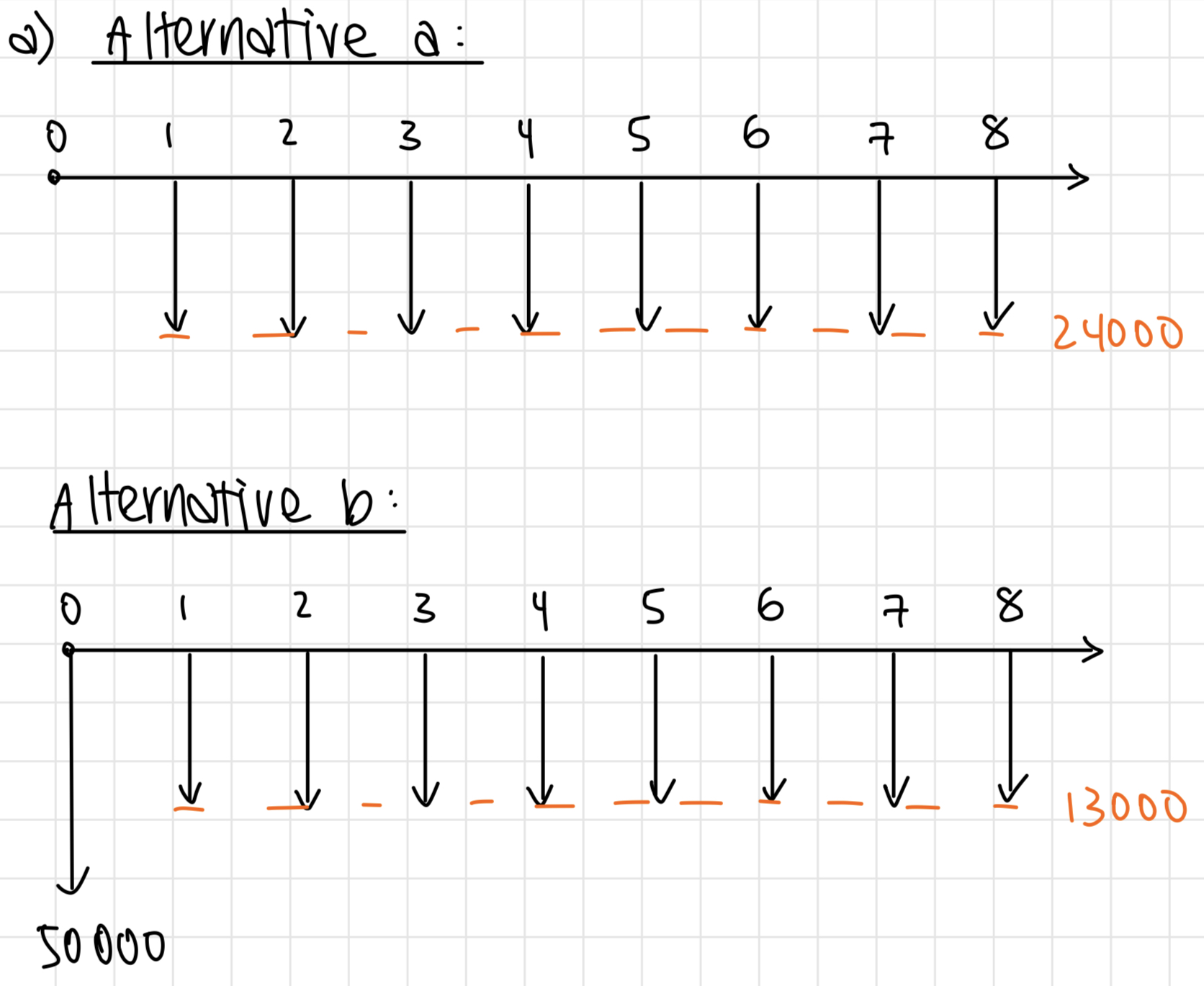 Given MARR = 8% yearly, the effective interest rate for O&M every 3 years is