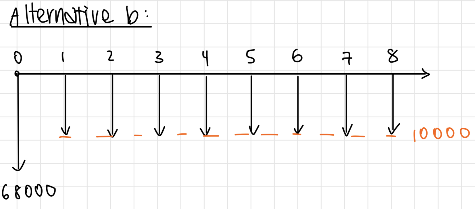 Between not doing anything and option B, we choose option B since it’s greater than the MARR and option B has a higher initial cost.