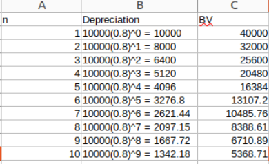 With declining-balance depreciation, the depreciation schedule and BV are here: