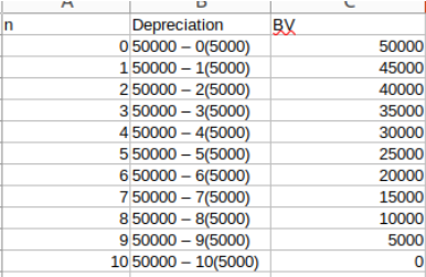 We can use straight-line depreciation to find a depreciation rate of 5000 per year. BV and depreciation schedule is as follows: