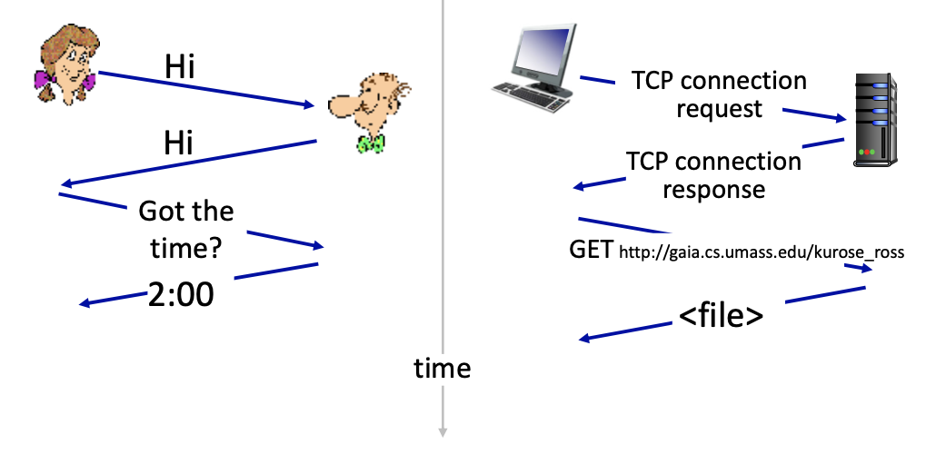 - Defines the format, order of messages and received among network entities, and actions taken on message transmission, receipt.