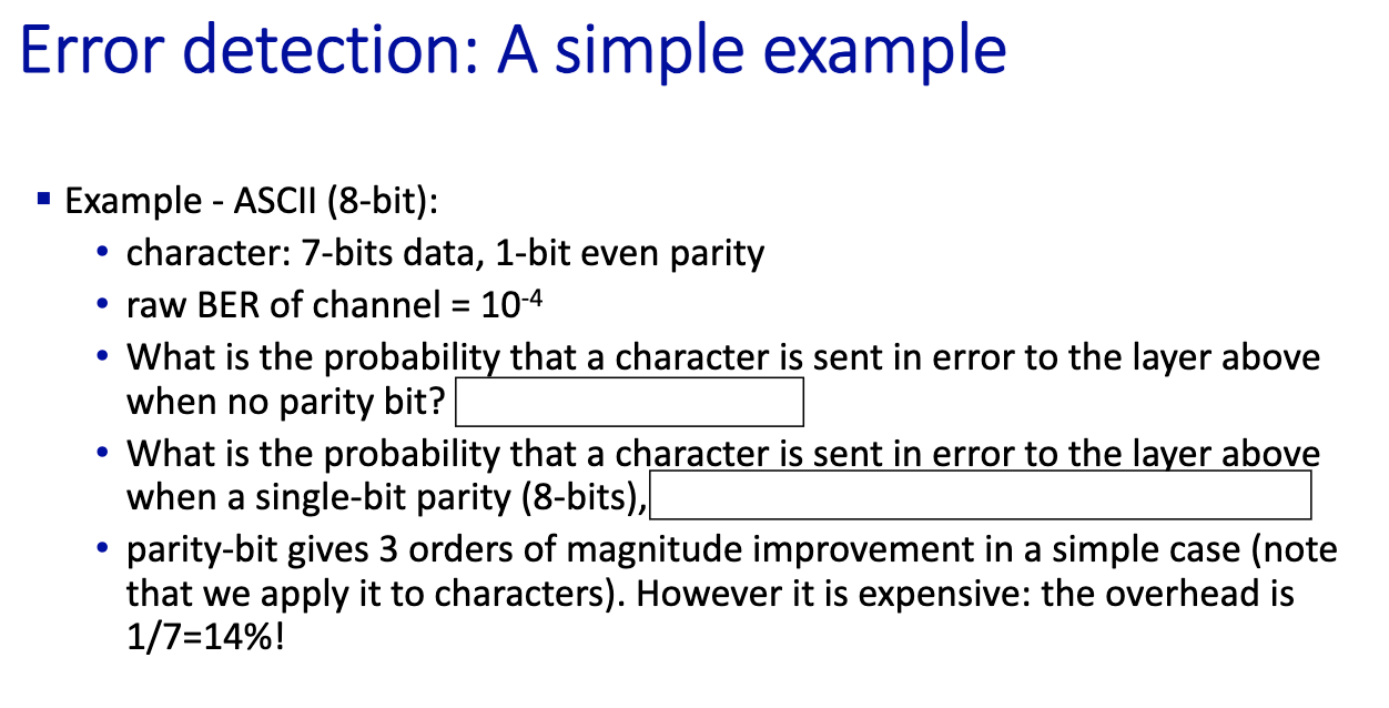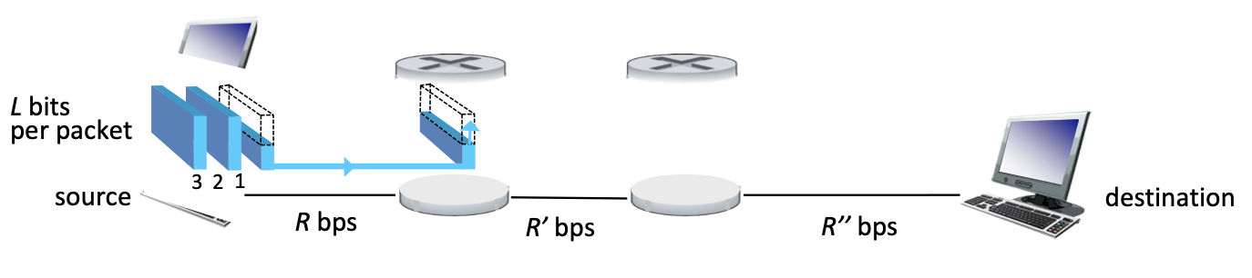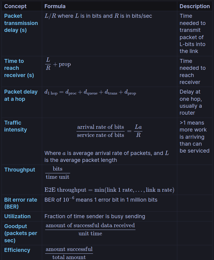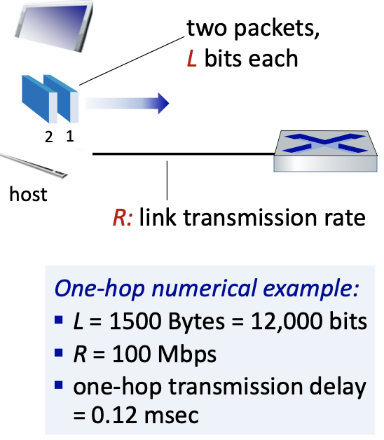 - Rate: Number of bits that can be transmitted on the link in a given unit of time (i.e., C bits/s). It depends on length of the medium and the capability of the transmitter. Ex: 1 Mb/s, means that it takes the transmitter s to transmit (push out a bit)