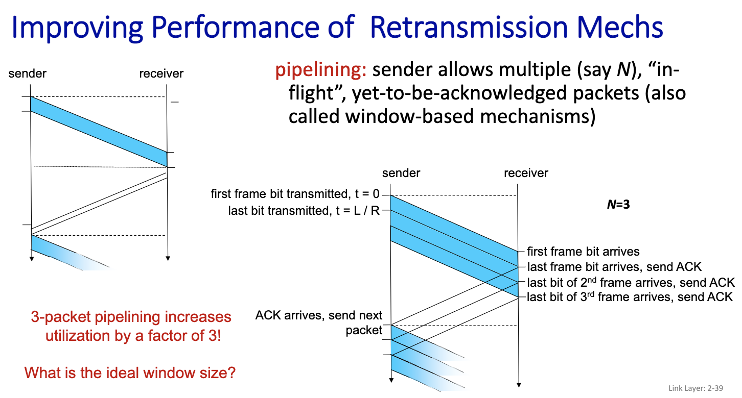 - TCP computes window size. big window size: allow a lot of bytes “in-flight”