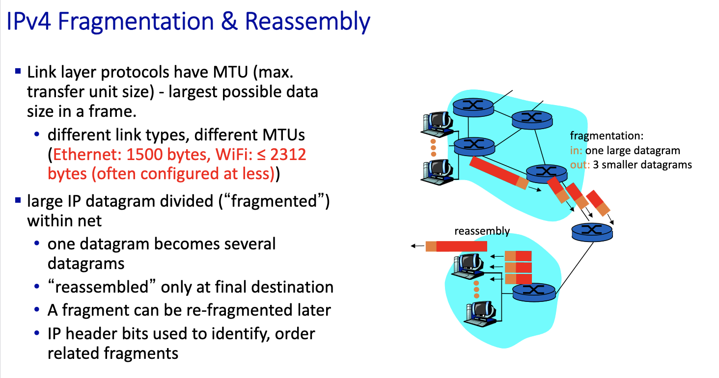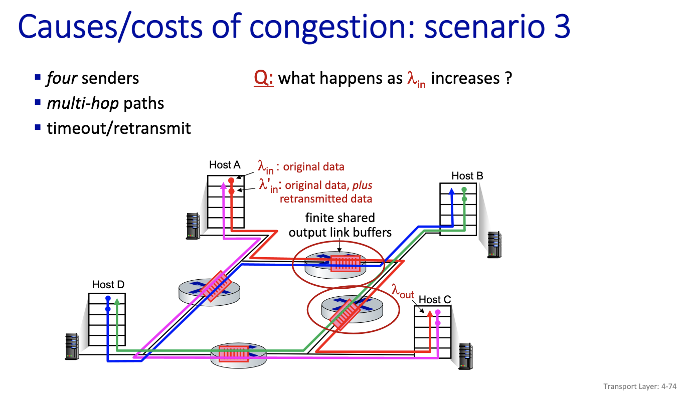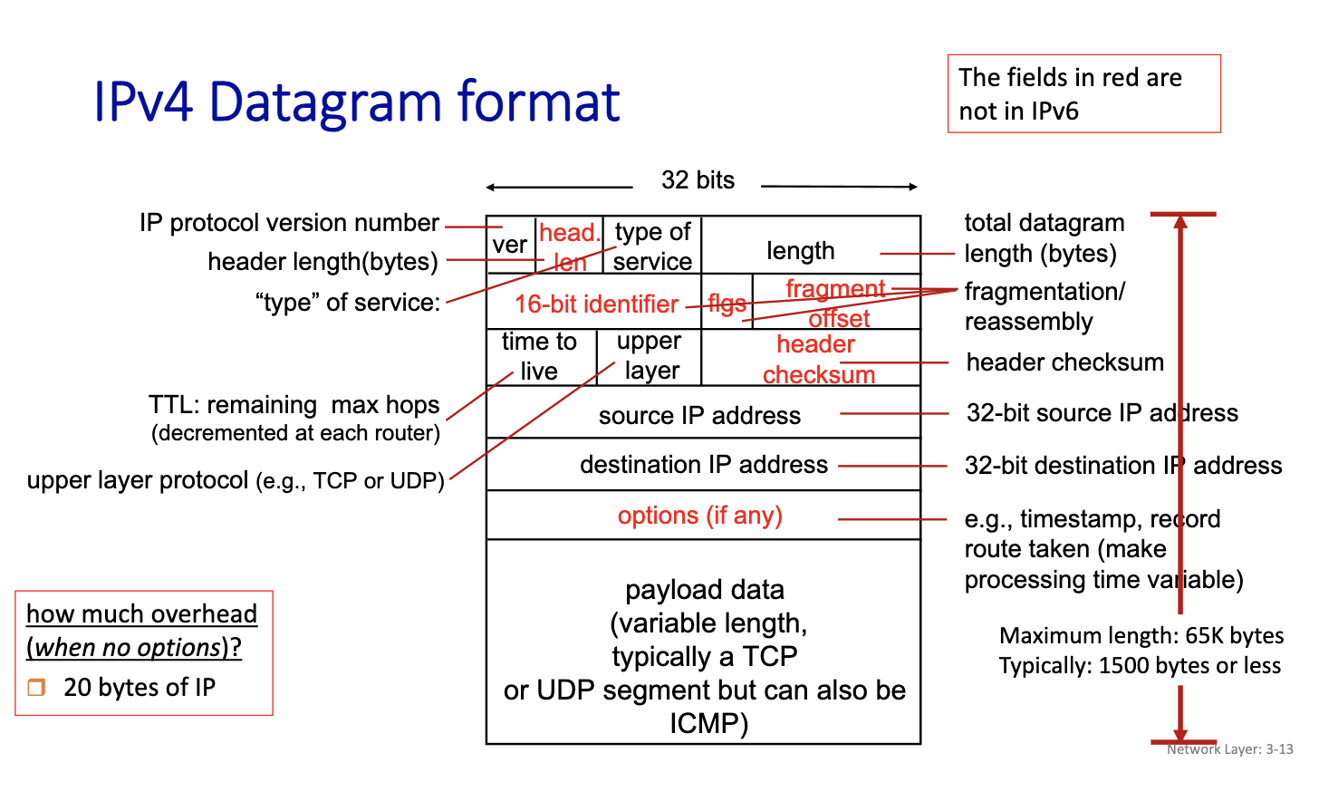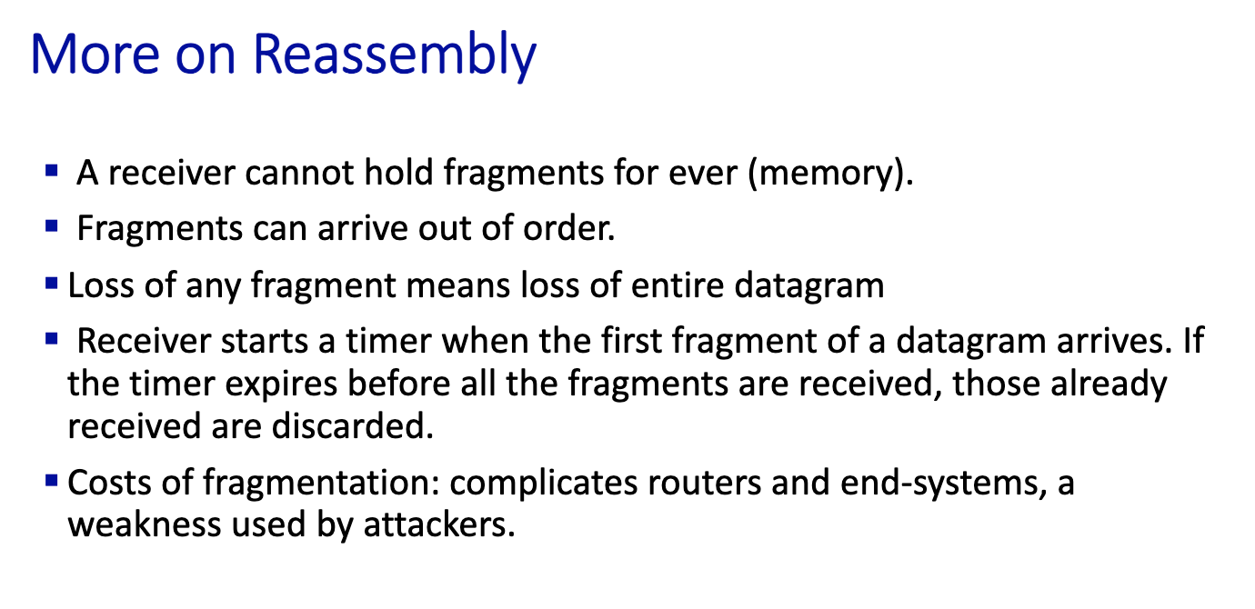 - Mark IP header →IP datagram with 2 bits when there is a problem (router don’t know anything about the TCP). But still putting 2 bits, mark all packets 11 if there is a problem. Which is going to TCP layer of destination. And destination is put the bit on ACK segment (layer 4 TCP) to say there’s explicit congestion