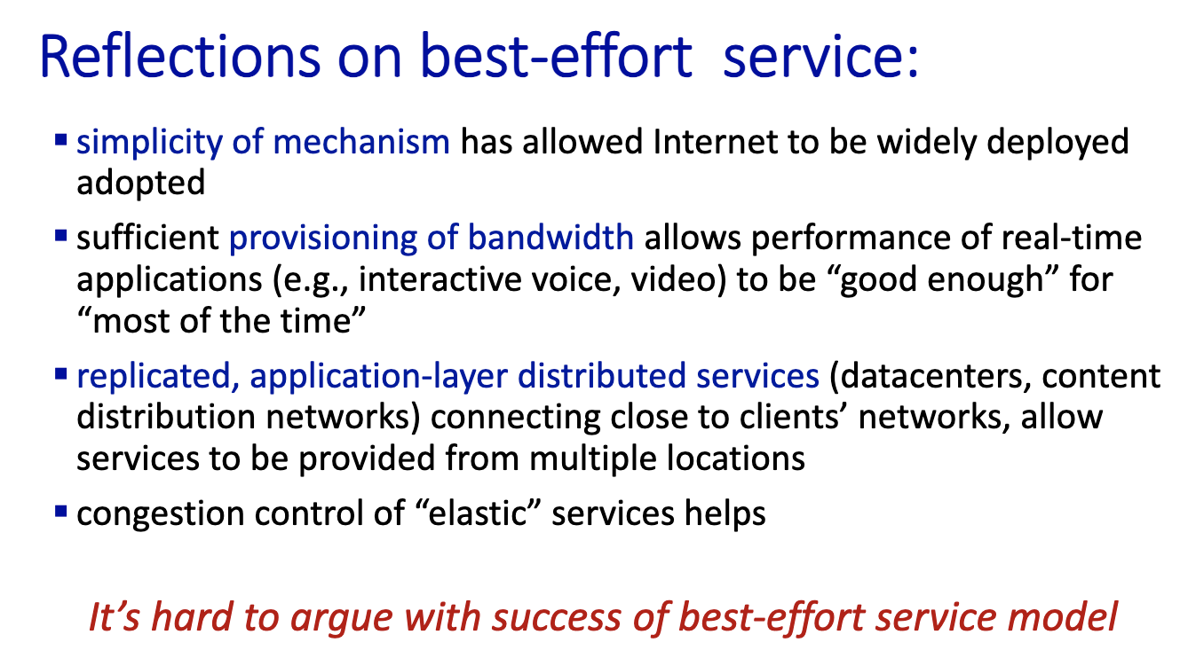 - we start with sending 1 byte, and increase congestion window very fast. prob the network , push the limit, then when the original TCP believes there’s congestion, it backs off. THE KID PRINCIPLE
