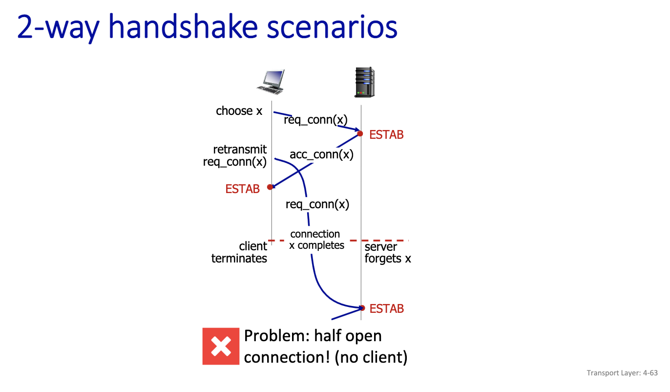 - server forgets about the client, when the client tries to retransmit, but the server would think its a new