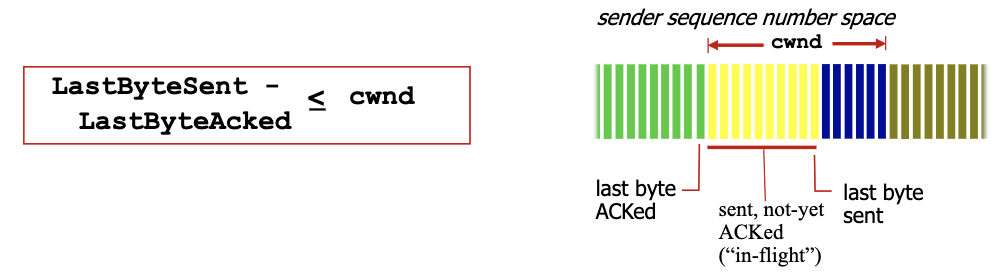 cwndis dynamically adjusted in response to observed network congestion (implementing TCP congestion control) - Recall, the window size is the number of bytes that are allowed to be in flight simultaneously.
