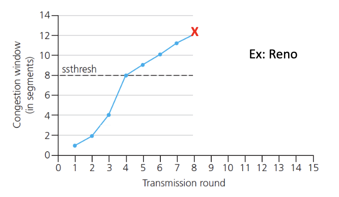 - When cwnd = ssthresh, TCP goes to Congestin Avoidance phase.