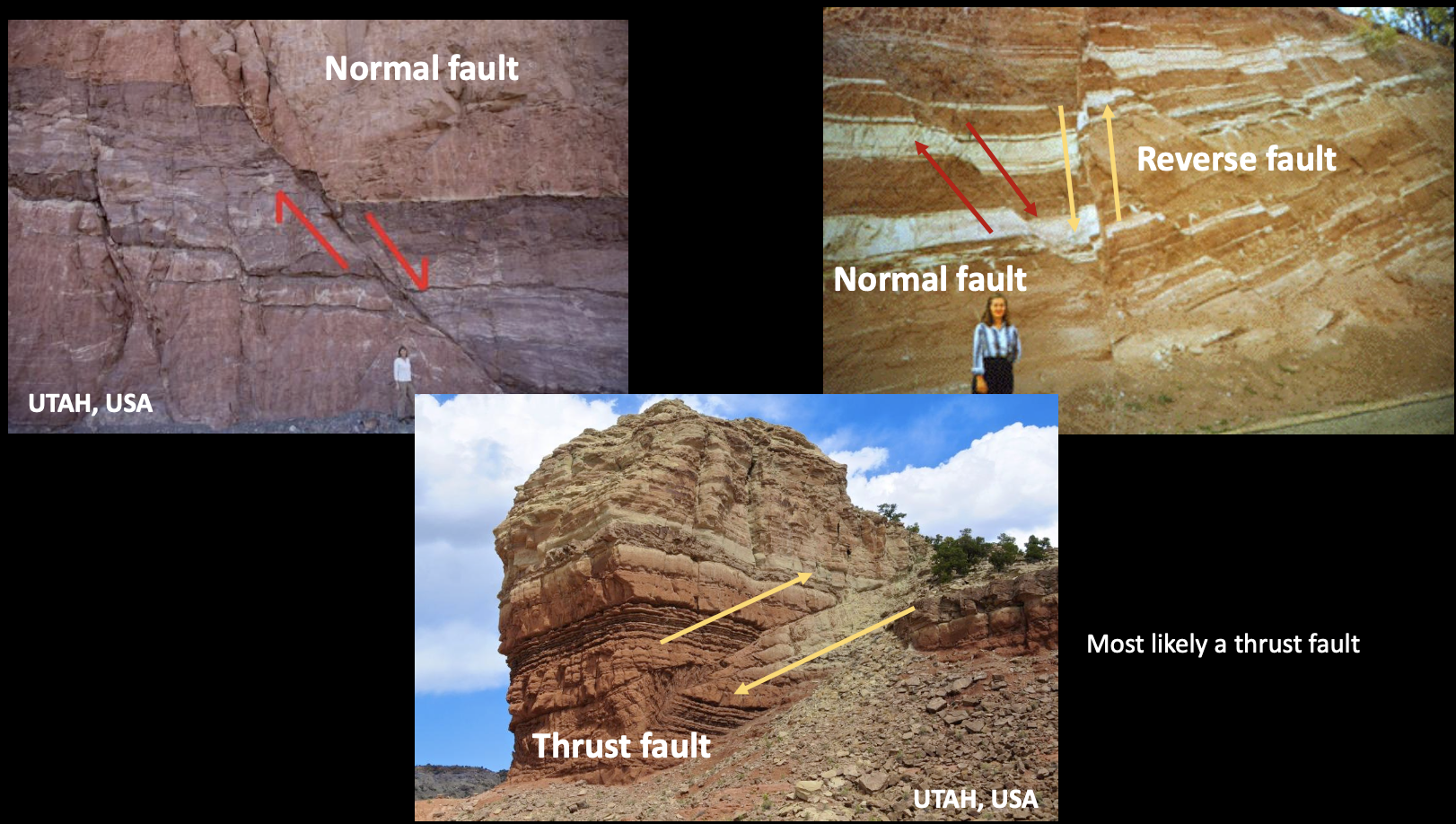 - Faults are planar breaks in rock where there is displacement of one plate relative to the other plate