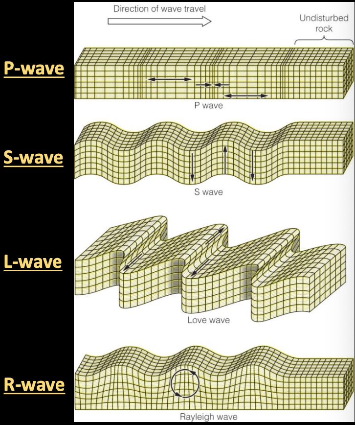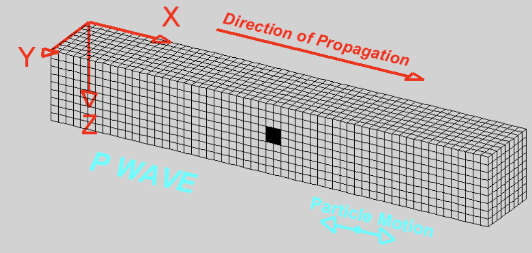 They are the fastest seismic waves, and can travel through solids, liquids and gases. P-waves are compressional, or “push-pull”, moving material back and forth along a line in the same direction that the waves themselves are moving (parallel to direction of travel).