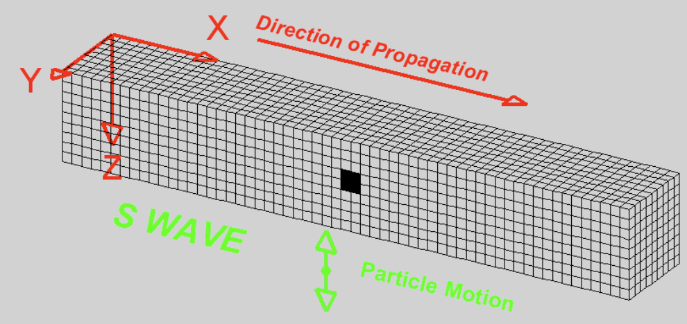 Are somewhat slower than P-waves and can only travel through solids. These shear waves move material perpendicular to the direction of travel, thereby producing shear stresses. S-waves cannot travel through liquids, because they have no shear strength.