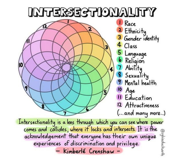 Kimberlé Crenshaw coined the term “intersectionality” in her 1991 article “Mapping the Margins.” Since then, Crenshaw’s term has taken flight and is currently part of many discourses that bring attention to the ways our identities, histories, and contexts inform, cooperate, and exacerbate our experiences — often oppressive — with power, politics, violence, and law. It has been applied to law, health, politics, economics, finances, population demographics and housing, access to education, access to justice, and many other fields.