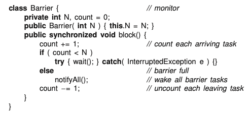 blockandlastblock: member blocks each task at block until all task has arrived and calledblock. And last task that calls block does not block and releases other tasks (cooperation). They leave together (synchronization).last: Last is implicitly called by the Nth thread that triggers the barrier release.