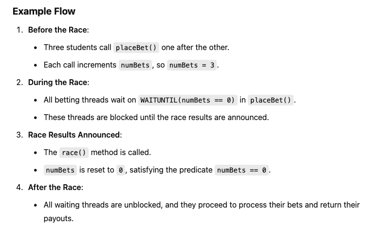 - The waiting thread (which was blocked, waiting for the condition) cannot resume execution right away, even though it has been signaled. This is because the signaled thread needs to acquire the monitor lock to proceed, but the lock is still held by the signaling thread.