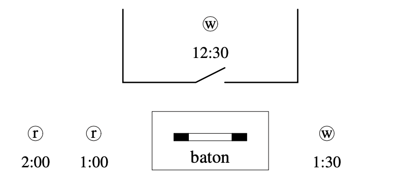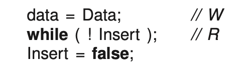 - h) With respect to the readers/writer problem, there are two kinds of temporal reordering that can lead to incorrect behaviour. Describe these two reorderings.