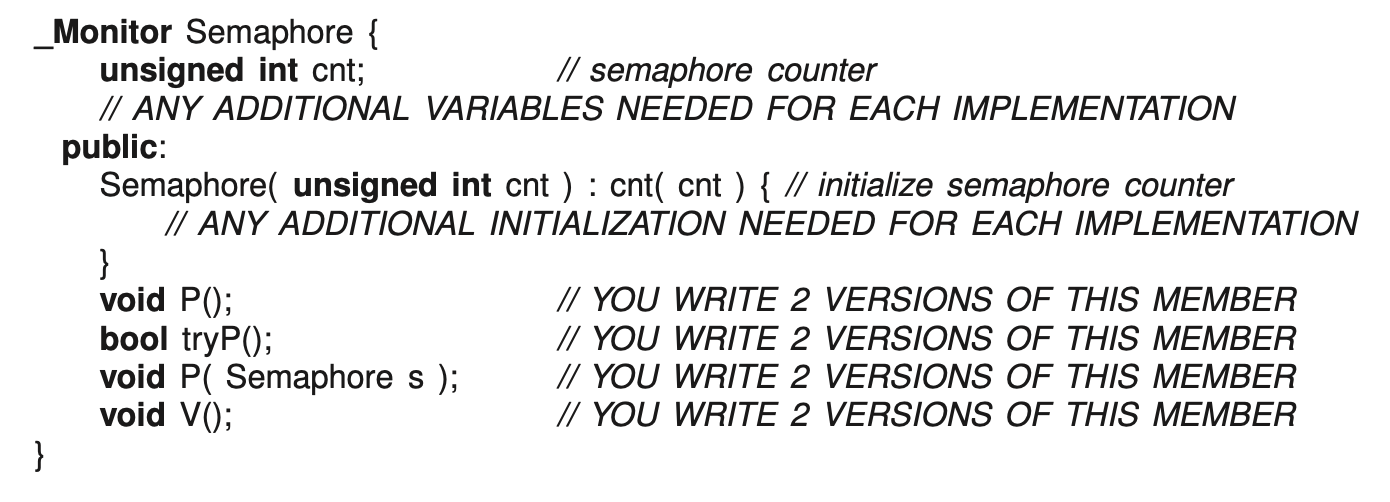 The μC++ uCondition operations are available at the end of the exam.