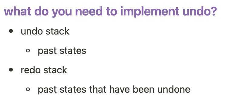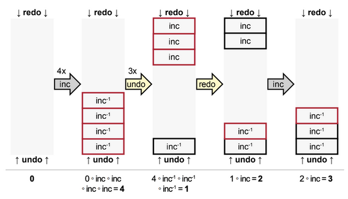 - To undo an action, the application performs the reverse operation stored on the undo stack.