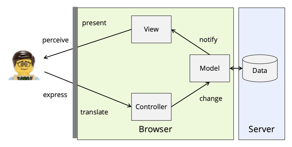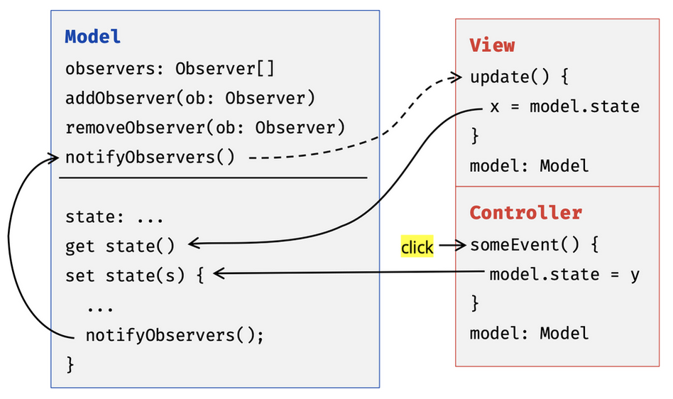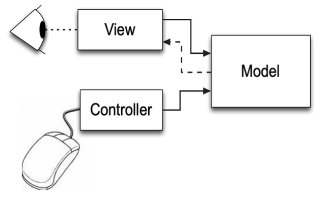- data is loaded from the web server → data in the model is updated → the view is notified → the user sees the new information