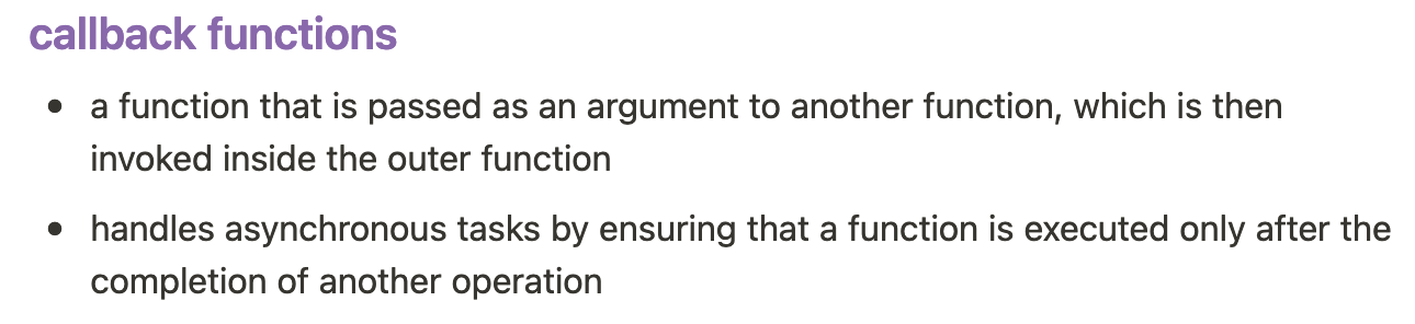 */- can lead to “callback hell”, which is many nested callbacks that make the code hard to read