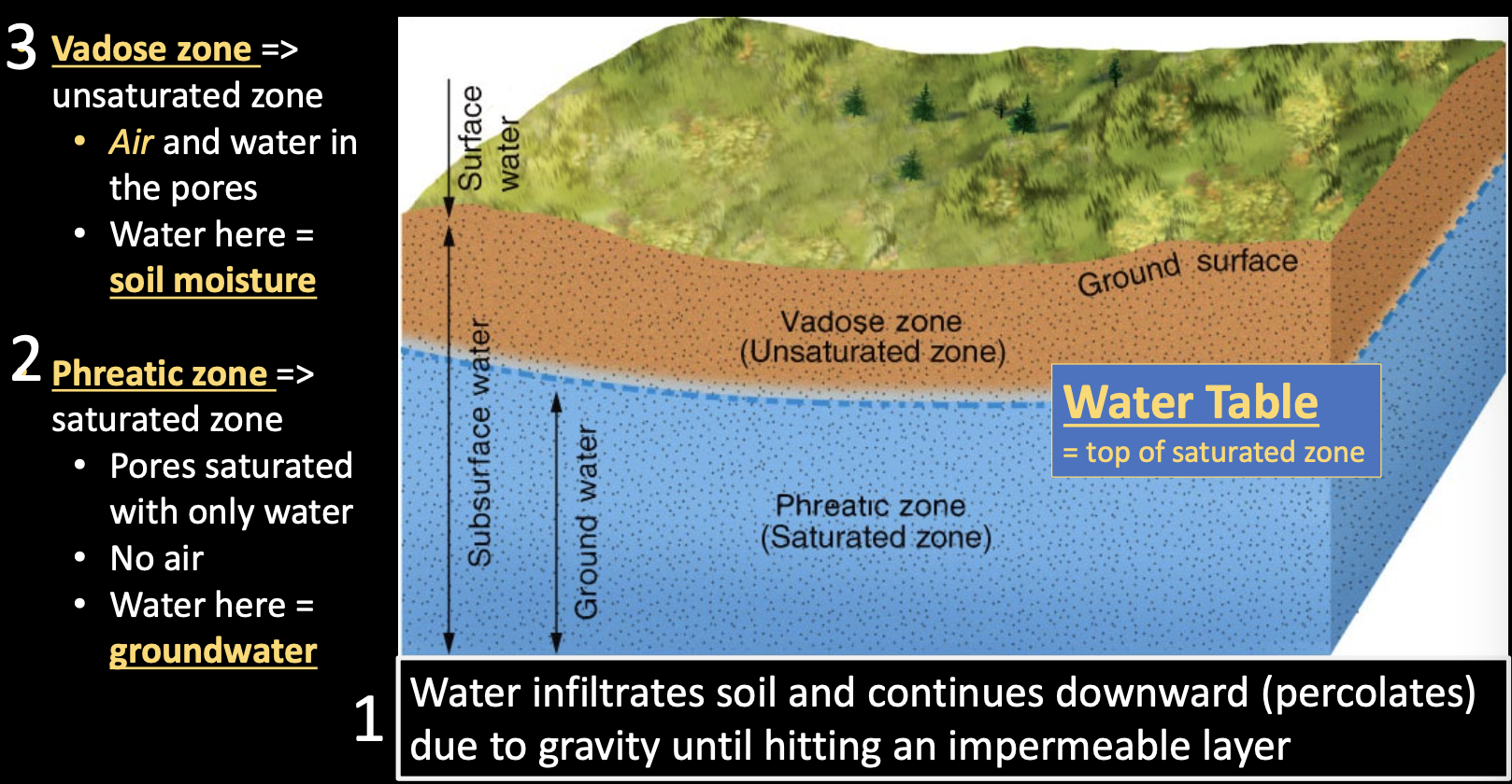 - The presence, amount, and behaviour of subsurface water is related to the geology of an area