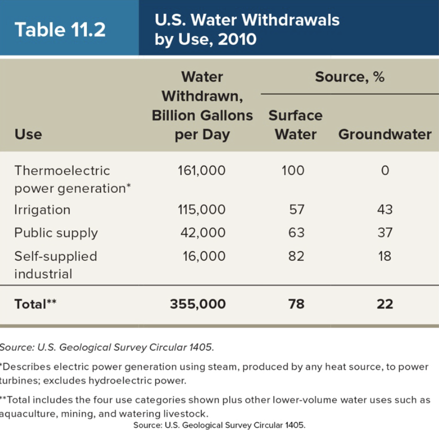 - Even though groundwater is reliable, it is only contributing ~22% to USA water use.