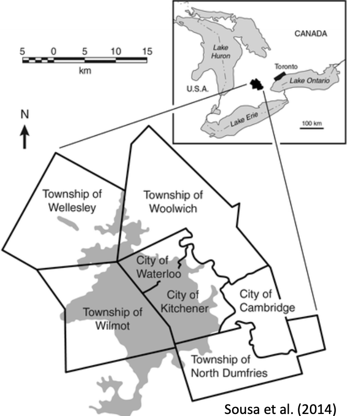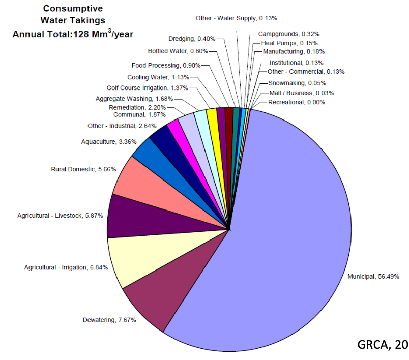 - 45% of drinking water from Waterloo Moraine, 35% from other groundwater sources, and 20% from surface waters