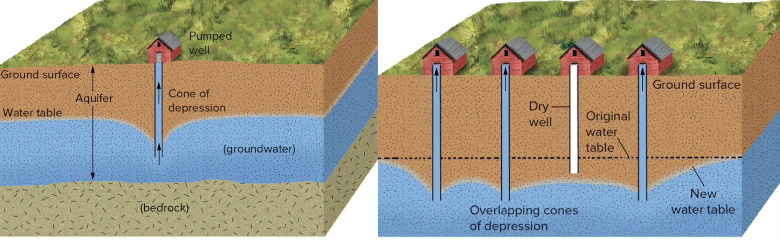 100 billion gallons per day are consumed (not returned) - and groundwater takes years or centuries to fully recharge