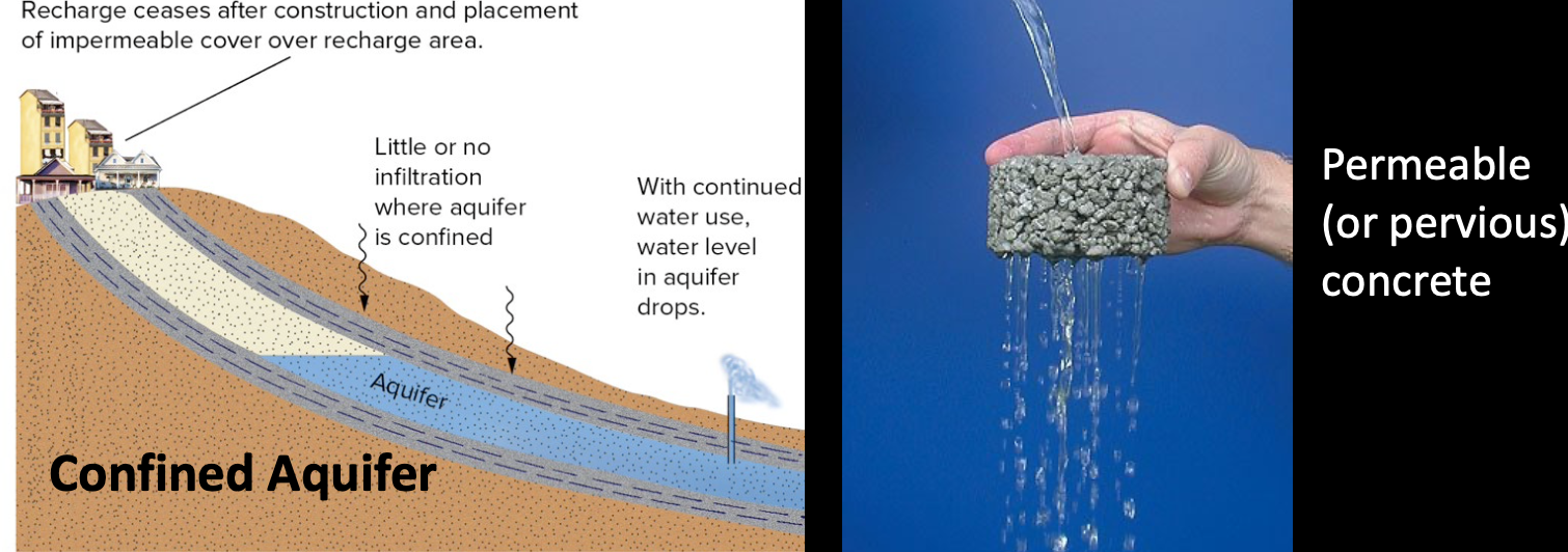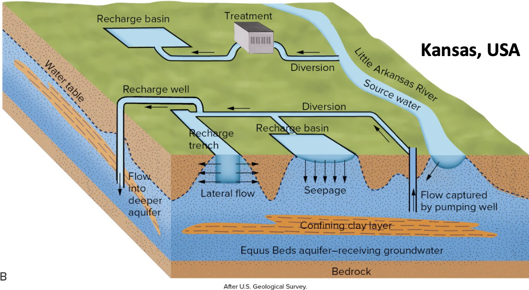 - Artificial recharge basin: catches surface runoff on sloped ground that is stored for infiltration
