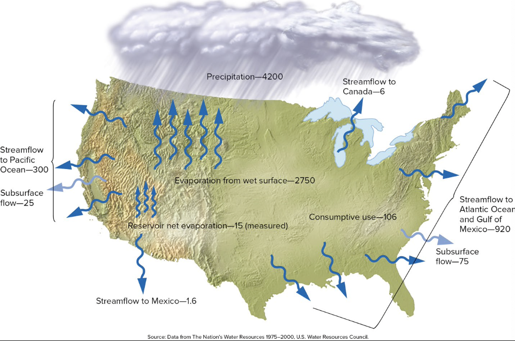 But >350 billion gallons per day are used for household, industry, power, agriculture (offstream use) and several trillion for hydropower (instream use)