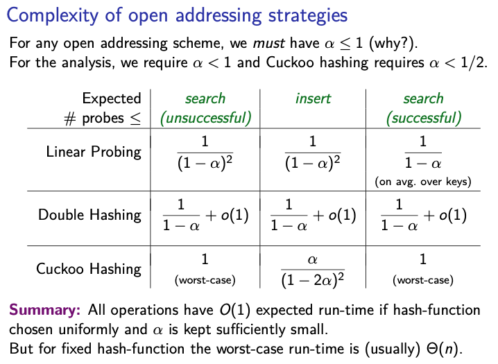 Complexity of open addressing strategies